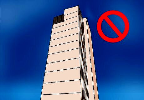 Know where not to seek shelter. Not all hiding spots are created equal. The following locations should be your absolute last resort during a tornado, as they all have the potential to be severely damaged by high winds: Mobile homes Tall buildings Open rooms with lots of windows Buildings with flat, wide roofs (cafeterias, gyms, warehouses, big box stores)