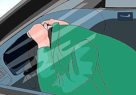 Stay in your car if there is absolutely no other structure nearby. Fasten your seat-belt and duck down below the window line. Take your coat, a blanket, a pillow, etc. and put it over your head and back, and hold your hands over your head to protect your skull. Stay put until you can safely drive to shelter. Be on the lookout for multiple tornadoes. Again, there may be multiple tornadoes after the first one has passed.