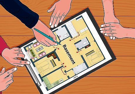 Craft an emergency plan in your house. Make a plan for where to go during a tornado. Have this plan in place and practiced before you need it. Everyone you live with should know exactly which room of the house to go to in the event of a tornado. Make sure that this room is stocked with all necessary provisions. Note the places in each room where you should seek cover if you cannot escape, like under tables or cabinets. Are there any places where you would be trapped or in extra danger, such as upstairs rooms? Are there ways to make them safe, such as stashing a cheap rope ladder? Do you have first aid kits, crowbars, fire extinguishers or other special equipment around the house that people should know how to find?