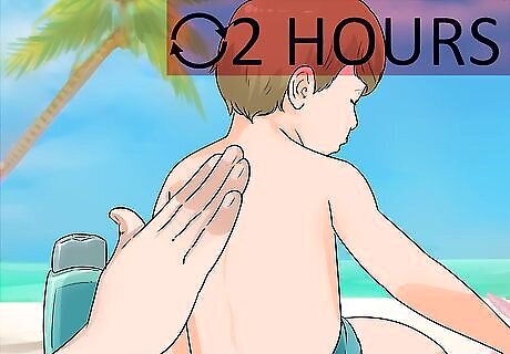 Apply sunscreen every two hours. Sunscreen can wear off after a few hours, so be sure to reapply it every two hours. If your baby has been in the water or has been perspiring, apply the sunscreen more frequently.
