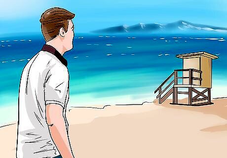 Find a calm spot to wade. Take your baby down to the tide to wade in a section that is calm and clean. Look to see that there are lifeguards nearby who can help or alert you if there are typically rough currents or waves in that area. Your baby will enjoy watching the gentle tide roll in and will love exploring the new textures in a peaceful wading spot.