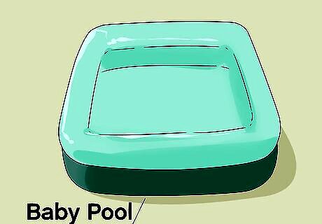 Inflate a small baby pool. A small inflatable pool can be a useful tool for a day at the beach with your baby. The pool can serve as a safe playpen for your little one, or it can be a great space to take a nap. Make sure you do not leave your child alone even though your baby may be in a safe confinement. Prop an umbrella over the baby pool to give it shade. Make sure, however, that there is plenty of ventilation for your baby.