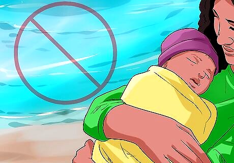 Avoid taking a newborn into the water. It is not recommended for babies under two months old to swim in lakes, rivers, pools, or oceans. A baby’s immune system is very vulnerable during this time, and contaminated water may make them more likely to become sick. To keep your newborn safe, keep them away from ocean water until they are over two months old.