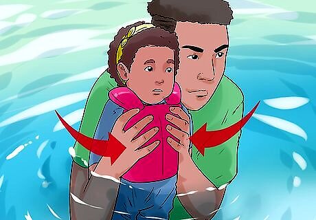 Hold your baby securely while in the water. If you take your baby into the water, make sure that you are holding them safely and securely. Waves can be more powerful than they look. Keep a close hold on your child so that the waves do not knock them over or push them under water.