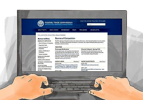 Go to the FTC's Bureau of Competition website. When federal antitrust laws are at issue, you will need to report to a federal agency. One of the main federal enforcement agencies is the FTC's Bureau of Competition. The Bureau of Competition has the power to investigate complaints and bring federal lawsuits against alleged lawbreakers. The FTC will handle most of the administrative complaints and complaints that lead to civil litigation. They will consult with the DOJ's Antitrust Division before opening any investigation. To start the FTC complaint process, visit the Competition Bureau's reporting website.