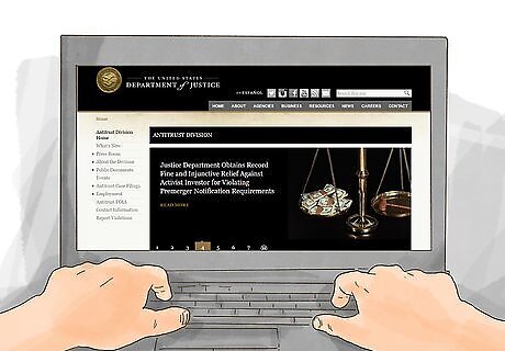 Navigate to the DOJ's Antitrust Division website. The DOJ's Antitrust Division investigates possible federal antitrust violations in much the same way the FTC does. However, while the FTC will handle most of the civil claims, the DOJ will handle all criminal investigations. If you think you have uncovered a major case of price fixing, go to the DOJ's Antitrust Division website to start the complaint process.