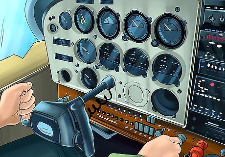 When you have reached your desired altitude lower the nose so that the plane is no longer gaining altitude by pushing forward on the controls.
