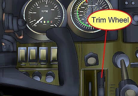 To alleviate the need for constant back pressure on the control column in order to maintain the targeted speed you can trim the aircraft. Once the aircraft is stabilized into a climb at 68 knots trim the aircraft using the trim wheel. To trim the aircraft so the nose points more towards the ground rotate the wheel upwards, rotate the wheel downwards to raise the aircraft nose. This may take some adjustment. After you have trimmed the aircraft correctly it will maintain the targeted speed.