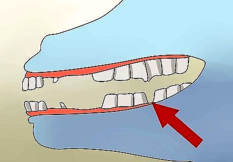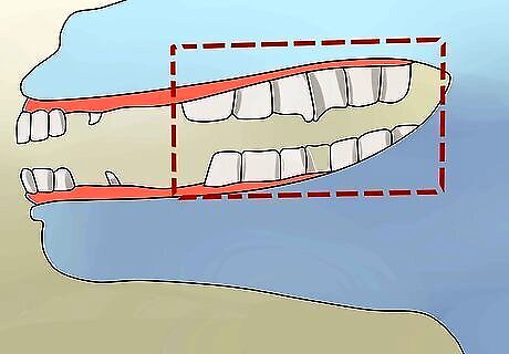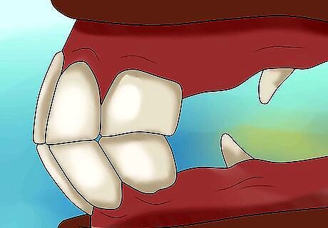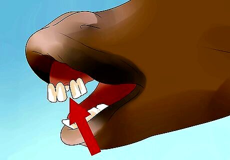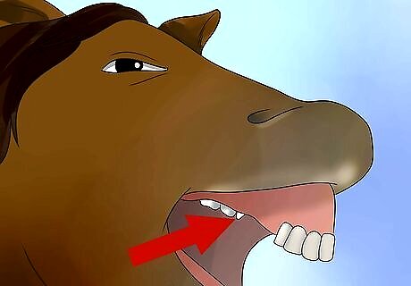 Examine the diastema. It is normal for there to be a gap between the incisors at the front of the mouth, and the molars to the rear. This gap is known as the diastema. Some young horses grow extra "wolf" teeth, or tushes, in this gap. These teeth, which are technically known as the first premolars, start to erupt with the adult teeth and erupt from about 5 to 12 months of age. It is important to recognize if these teeth are present or not because the bit will knock against them and cause the horse pain. Thankfully, it is a simple procedure for the vet to extract these teeth.