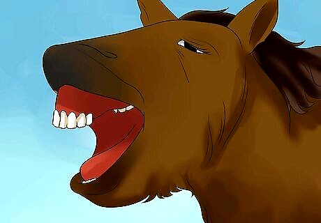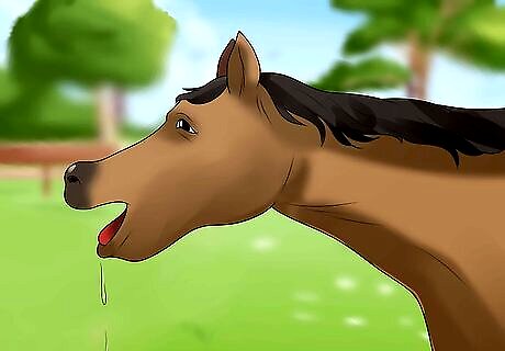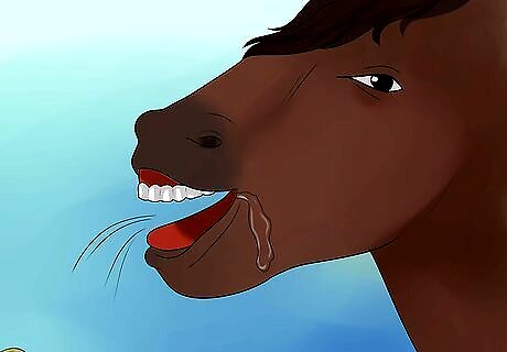 Take note if your horse tosses his head frequently. As the horse chews, he may tosses his head around as if in discomfort. When this happens, he is likely trying to avoid chewing on certain teeth and physically moving his head in response.