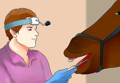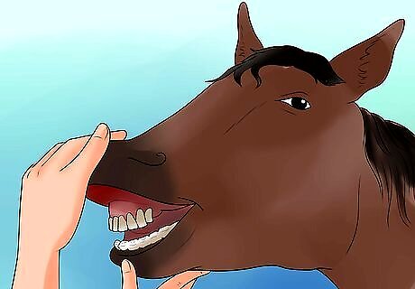 Check your horse’s teeth regularly. Every responsible horse owner should regularly check their horse's teeth on a regular basis. Fully visualizing all tooth surfaces of the molars requires specialist equipment, but you are still able to check the incisors and the molars for any obvious problems or signs of discomfort. Ideally, you should check your horse's mouth as part of his bridling up routine each time he is ridden, but failing this, check his teeth at least once a week.