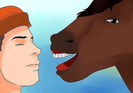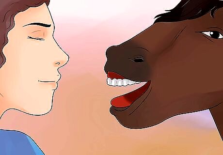 Smell your horse’s breath. Take a moment to smell the horse's breath. This helps you to familiarize yourself with what is normal, so if the horse develops halitosis (bad breath) you will recognize it.