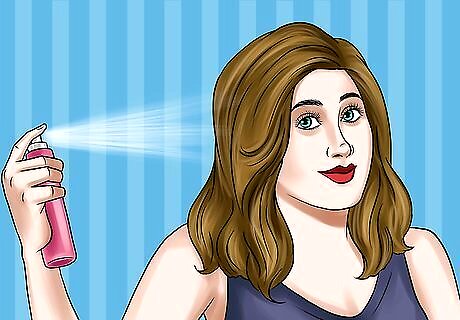 Scrunch a texturizing spray into your hair. To play up the wavy texture of your hair, lightly apply a texturizing spray. Use your fingers to scrunch the product into your hair and emphasize the waves that you have. Arrange your hair as you'd like, and you're ready to head out for the evening. You may want to give your hair a light misting of flexible hold hairspray once you're happy with the way that your waves look. That will help your style last all night.