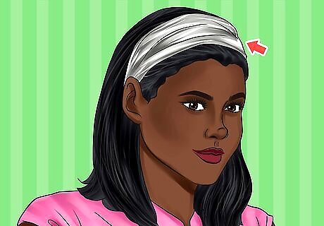 Add a satin headband. If you've worn your hair down in a simple daytime style, you can make it look more polished for evening by adding a headband. Opt for a satin style that adds some elegance to your look with minimal effort. Brush your hair to ensure that it's free of tangles, and slide the headband into place. You can opt for a satin headband that matches your outfit, or choose one in a neutral color, such as black, gray, or white. In addition to a satin headband, you can take your hairstyle from day to night by adding a headband with rhinestones, beads, decorative flowers, or bows. Even a headband in a metallic finish, such as gold or silver, can dress up your hair for the evening.