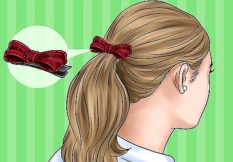 Replace your hair elastics with embellished clips. If you've worn your hair in an updo or a half up, half down style during the day, you can make your look more evening appropriate by adding embellished clips. Replace the hair elastic securing your ponytail with a beaded clip, or switch a simple tortoise shell clip that's holding the top section of your hair back with a rhinestone version.