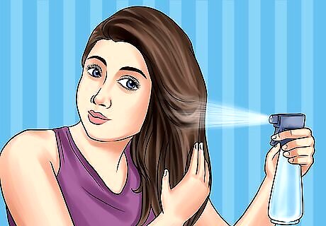 Dampen your hair. Creating waves from a bun is a great option for long hair. When you want to use a bun to create waves in your hair, it's best to start with at least partially damp hair. If you're washing your hair in the morning, blow or air dry it halfway before creating the bun. If you don't plan to wash your hair, lightly mist it with a spray bottle filled with water. Instead of water, you can also use a leave-in conditioner spray to dampen your hair before putting in a bun.
