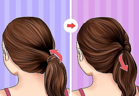 Roll the ponytail up for the evening. When you're ready to head out for the evening, take the end of your ponytail and carefully roll it back towards the twists surrounding the elastic. The roll doesn't have to be perfect, but try to keep it as neat as possible. You'll have more control over the hair if you roll the ponytail back as tightly as possible.