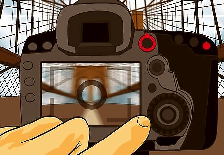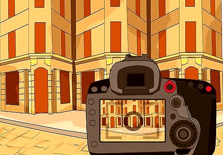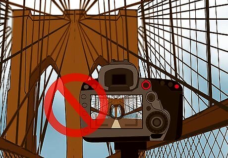 Be creative. Follow your creative instinct in your travel journal and with your camera. In your journal, challenge yourself to think about the nuances of your conversations and about the little things you observed during the day. With your camera, challenge yourself to get creative by taking shots from down low, up high, zooming in, and shooting slightly out of focus. In this way, you can make interesting shots, even if the location is a familiar spot that everyone will know like the Eiffel Tower or the Brooklyn Bridge. If there is a tourist landmark you want to shoot, take a picture from your boots. Get down low and shoot the monument from down low to make it look more imposing and impressive. Use a monopod extender or just your arm and shoot the scene from up high. You could also try getting up on a bridge to shoot a scene from higher up. Keep your camera still but zoom in or out on your subject while taking the picture. This will create a sense of movement in your photograph, which can look quite compelling. Try shooting your subject intentionally out of focus so that it has a blurry look. If you are shooting a landmark, people will probably still recognize it.