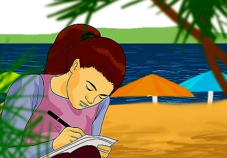 Write in a travel journal. Record your travel experiences and the details of your trip in a journal. At the end of the trip, you can use a few of the stories recorded in your travel journal to write a compelling social media post about your trip. In your travel journal, you could record the dates, times, places, costs, and other details of your journey. You can keep a travel journal as a paper journal or on a laptop or device. As a prompt to write in your journal, you could think about whether there was a theme for the day. A theme might be unexpected encounters, exhaustion, or learning moments. Once you have your theme, expand on it. To spark reflection for your journal, ask yourself: “What was special about today?”