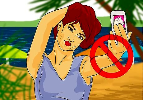 Limit your selfies. Your friends know what you look like. They want to see the place and the landscape as opposed to another selfie or your tan. You should avoid sharing too many selfies. If you take a lot of selfies, you can keep them as private memories instead of sharing them.