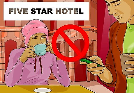 Avoid bragging with photos. Nobody wants to see you sipping champagne in an airport lounge or enjoying a really expensive meal at a five star restaurant. The pleasure of social media is built on common experiences as opposed to unique and rare experiences. People can feel alienated if you post a lot of photos of really exceptional, rare, or expensive sorts of experiences. So, it is best to avoid bragging with your photos.