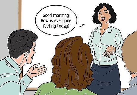 Listen, talk, and observe to find out what your students enjoy. You might consider starting each class with a few minutes of friendly conversation. Ask your students how they’re doing, if they have any fun plans for the weekend, or what they have been up to since you last met. This can help to develop a rapport with your students that will keep them engaged with your course. For example, you might begin class by saying, “Hi everyone. How was your weekend?” or “Good morning! How is everyone feeling today?” You can also follow up with students by asking about something they shared with you in the previous class. For example, you might say, “Bobby, how was your brother’s wedding?” or “Did you get to go to the beach this weekend like you wanted to, Sharon?” Tip: It’s fine to joke around with your students now and then, too. Keep your tone light-hearted and friendly when you teach lessons and look for occasional opportunities to engage your students in a humorous way.