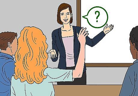 Invite questions and let students know that you’re there to help. Remind students often that you are happy to answer their questions so that they won’t be nervous about asking. When a student does ask a question, be friendly and encouraging with your response. Smile and let them know that you appreciate the question. It’s also a good idea to pause after introducing new material and ask if students have any questions. You can also encourage students to stop you during lessons if they find something confusing, want you to repeat something, or need you to go slower.Tip: Some students may be afraid or embarrassed to ask questions in class, so make sure to offer alternative ways to submitting questions, such as via email or by giving students an anonymous form to complete at the end of each class.
