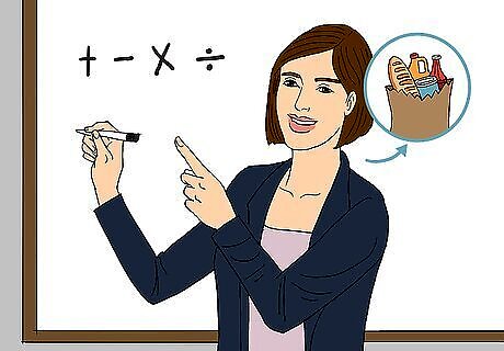 Relate the material you teach to everyday situations. Look for ways that you can compare what you’re teaching to something that is familiar to your students. Consider their interests based on previous conversation, or use simple, relatable examples from daily life to illustrate concepts. This can help to keep them interested and make the material easier to understand. For example, if you’re teaching a math concept, you might turn the equation into a word problem that incorporates the cost of groceries or sports scores. If you’re explaining a philosophical concept, you might ask students an ethical question to introduce it and invite them to provide answers based on their experiences.
