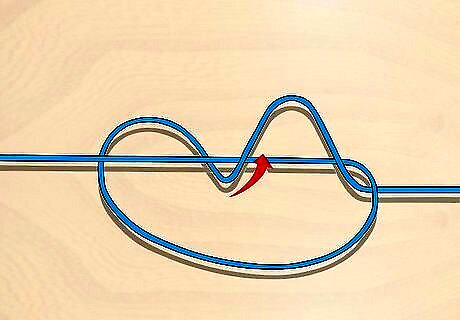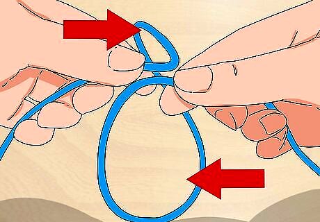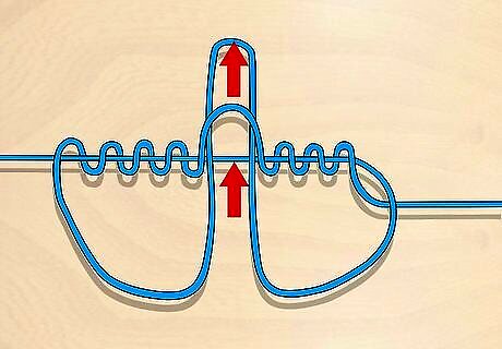Bring the points together to form a loop. At this point, it doesn’t matter if the side of the line in your right or left hand is placed on top. Once you’ve brought the two points together to form a loop, pinch the points firmly together using one of your hands. Make sure that the portion of the line which comprises the loop is not twisted. If you’re tying the knot on a flat surface, the loop should lie flat.