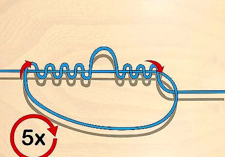 Wrap the loop around itself 5 more times. Once you’ve wrapped the bottom of the loop over the top, repeat this step until there are 6 loops total. If you’re using a heavy, thick monofilament fishing line—e.g. 100 lb or thicker—you can stop at 3 loops.