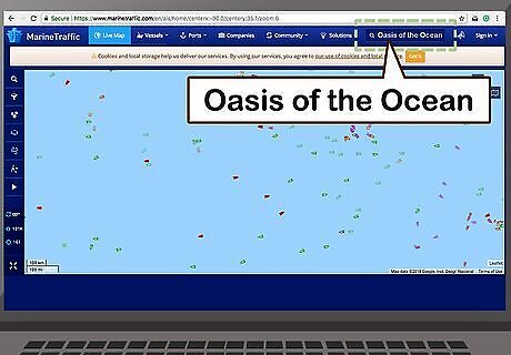 Insert the name of the ship into the search. All ships have a name, so if you know the name of the ship you want to search, you can type it into the search bar.The site will search its database for the ship that you want to track and will highlight it on the map. You should now be able to view the ship details and verify that it’s the ship that you want to track. If you want to ensure that the ship is the correct one, compare the ship's unique IMO and MMSI number to make sure that it's the same one. For instance, if you were trying to look track the cruise ship Oasis of the Ocean, you would type "Oasis of the Ocean" into the search bar. Many sites will also have lists of ships that you can browse through.