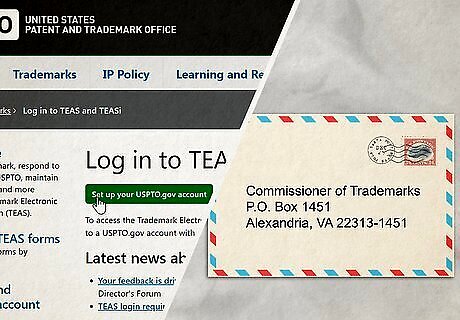 File the application with the USPTO. Once you have cleared your logo for use, you can simply begin using your logo, or register in one or more states in order to gain limited rights. However, the way to gain more extensive rights nationwide is to file with the U.S. Patent and Trademark Office. There are several ways you can file: Use the Trademark Electronic Application System (TEAS) to draft and submit your application online. TEAS provides the ability to check your application for completeness before submitting, then provides an e-mail summary of your application and a serial number with which to track it (via TESS or TSDR). Send it by mail to the Commissioner of Trademarks, P.O. Box 1451, Alexandria, VA 22313-1451. Two to three weeks after you send it in, you'll receive a filing receipt and serial number. Deliver it by hand or courier to the Trademark Assistance Center, Madison East, Concourse Level Room C 55, at 600 Dulany Street in Alexandria. You will be given a time-stamped receipt with an application serial number.