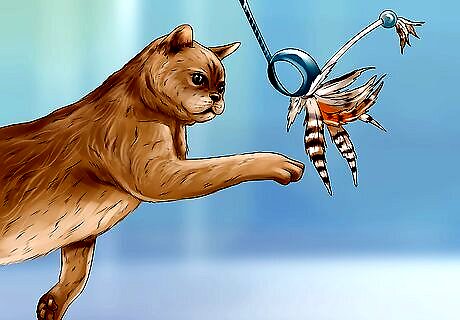 Play with your cat. If your cat is behaving well and you want to reward it, spend some time playing with the cat. Cats are naturally active animals with a great hunting instinct. For indoor cats especially, playing with them is a great way to keep them active and strengthen the bond between the two of you. You can also give your cat a toy with catnip inside. This is a treat for the cat, and also a fun thing you can use to play with your cat. Put your cat on your lap and pet it. Showing affection is also important in strengthening the bond between the two of you.