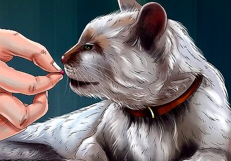 Wean your cat off the treats. Too many treats can lead to an unhealthy, overweight cat. So it’s important to transition away from treat-based rewards once your cat begins to learn the desired behavior. Switch from treats as every reward to rewarding only occasionally with treats. Instead, praise your cat when it behaves the way you want it to. Try praising your cat by saying things like, “Good kitty!” or by saying its name in a loving way. You can also pet your cat and rub it affectionately as an alternative to providing treats. Feel free to give your cat treats on occasion, just not every time once the behavior is learned.