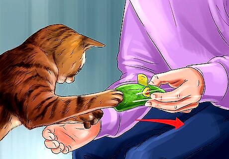 Be patient. Your cat can’t be expected to learn something new overnight. You need to give your cat some time so that it has a chance to learn the new behavior. Be patient with your cat and let it learn at its own pace, rather than trying to force it. Try not to get frustrated if it takes longer than expected. Keep working at it and your cat will get the hang of it over time. Don’t pick up your cat and try to force it into new behaviors. Let the cat come to the desired behavior on its own and then reward the behavior. Trying to force your cat may scare it. If you pick your cat up and try to make it use a scratching post or play with a certain toy, the cat may feel trapped or uneasy. Let the cat find the thing on its own. Try applying catnip to the new scratching post or toy. If the cat hasn't paid any attention to the new toy after a few days, move the toy to a new location that your cat frequents.