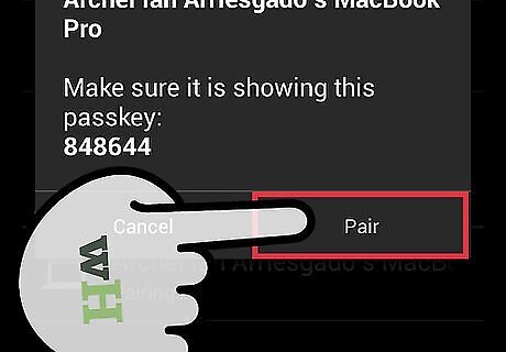Plug in your Bluetooth dongle to your computer, or turn Bluetooth on in your laptop. You only use a Bluetooth dongle when your computer doesn’t feature a Bluetooth antenna, unlike laptops, which are usually already Bluetooth capable.