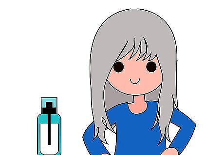 Use products designed for gray hair. As your gray hair grows in, it’s important to keep it healthy or it might break off or lose color. Buy special gray-friendly shampoos that will move your color away from yellow and closer to silver. It’s important to only use these types of shampoos once or twice a week or you can damage your hair. Don’t be surprised if the shampoo itself is blue or violet. That is normal and part of what helps to balance out your hair color. In between using these specialty shampoos, clean your hair with products that list “mild” on their packaging. This generally means that they have few chemicals and are primarily water-based. They will keep your hair clean, while limiting any damage.