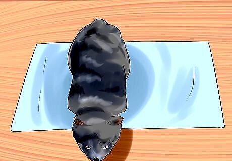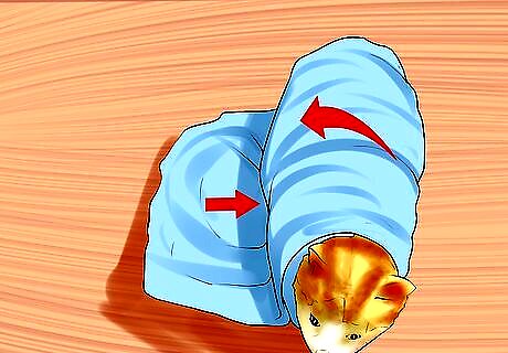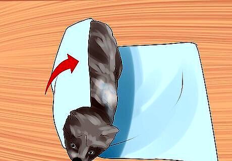 Lay the towel flat. On a flat surface, gently place your cat in the middle of the towel, several inches from the top.
