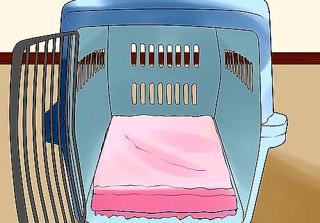 Place a towel in the crate. When the day of travel arrives, place a towel in the floor of the crate. This will help clean up any accidents your cat may have during travel and will keep your cat clean.