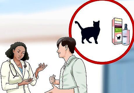 Talk to a veterinarian. It is important to discuss your options with a veterinarian before your journey. He or she will be able to determine your cat’s needs, offer sound advice, and prescribe a mild sedative or anti-nausea medication to help alleviate your cat’s nervous tendencies. It is also wise to discuss any required changes to your cat’s existing medications. Discuss the option of using a synthetic feline pheromone spray with your cat’s veterinarian. This may also be a useful option for helping your cat’s stress levels during and leading up to transport.