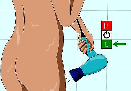 Blow-dry your genitals on a low, cool setting after showering. Blow-drying yourself can help reduce moisture and prevent the growth of yeast and bacteria on and around the vulva. Make sure to keep the airflow cool and gentle so you don’t burn or irritate the delicate skin in the area. If you have the time, you can also simply wait until your genital area has a chance to completely air dry before putting on underwear.