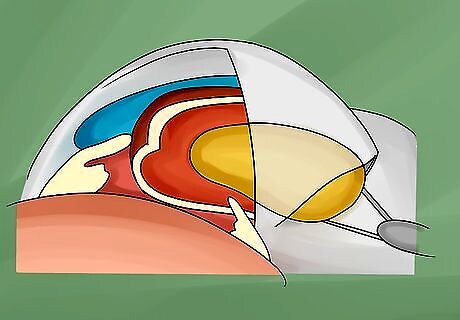 Consider local anesthetic. It can be scary to let a surgeon cut open your eye (even if it’s only a tiny incision). As such, some people opt to be “put to sleep” with a general anesthetic. However, you should consider “staying awake” with a local anesthetic. This offers far few risks of complication, and a quicker recovery. Local anesthetic is administered "locally," which means that it will be applied to the eye. In most cases, the surgeon will apply eye drops or inject the anesthetic below your eye. You will be awake and aware. While you might feel a slight twinge of pain or sensation, local anesthetic is relatively painless and extremely safe. There are very few risks involved. General anesthetic affects your entire body and renders you temporarily unconscious. It must only be done under the supervision of a trained anesthesiologist. General anesthetic can lead to changes in blood pressure, which (although rare) can be dangerous. Furthermore, recovering from general anesthetic is more difficult and takes more time.