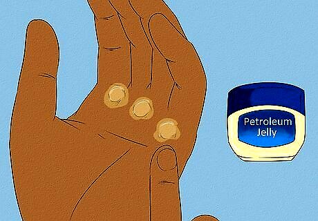 Use petroleum jelly (petrolatum). Petroleum can help seal in moisture, protect from friction and soften your skin. Thoroughly apply petroleum jelly over your hands and massage it in. Use it after hand-washing if needed or throughout the day.
