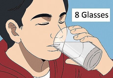 Drink water. Drinking water keeps your body hydrated. When you don’t get enough water, your skin is often the first to suffer. Drink at least 8 glasses of water a day and more if you engage in activities that cause you to sweat or spend time in the heat.