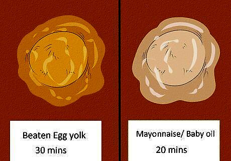 Try a home-made moisturizer. There are many moisturizers you can make at home. They contain basic ingredients that you probably already have on hand. They can also be very effective, so give them a try. Break open an egg. Beat the egg yolk with a beater or by hand. Apply the egg mixture on the skin of your hands. Leave it on for at least 30 minutes before rinsing it off with warm water. Combine 2 TBSP of real mayonnaise and a TSP of baby oil together and mix. Rub this mixture on your hands thoroughly, leaving it on for 20 minutes before washing it off.