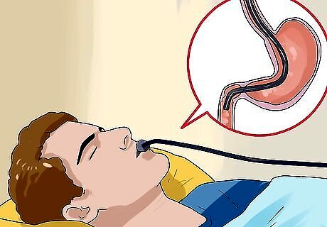 Have an endoscopic procedure if the ulcer is more severe. If medications don't help your ulcer pain, your doctor may run a small tube from your mouth down into your stomach. There's a small camera on the end of the scope, and the doctor can also use it to administer medications or to clip or cauterize the ulcer.