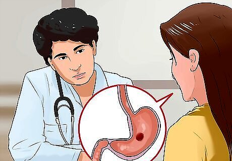 Get a diagnosis. Your doctor will probably want an EGD (EsophagoGastroDuodenoscopy). During this procedure, a small camera on a flexible tube is inserted into your stomach. This way, doctors can visualize the ulcers on your stomach and determine if any are bleeding. X-rays of the upper gastrointestinal tract can also diagnose gastric ulcers, although these aren't as widely used since they can miss small ulcers. After your initial treatment, your doctor may wish to perform an endoscopy, a procedure during which your doctor will use a tube with a tiny camera and light to examine your digestive tract. This way your doctor can ensure that the ulcer responded to treatment and was not actually a symptom of stomach cancer.