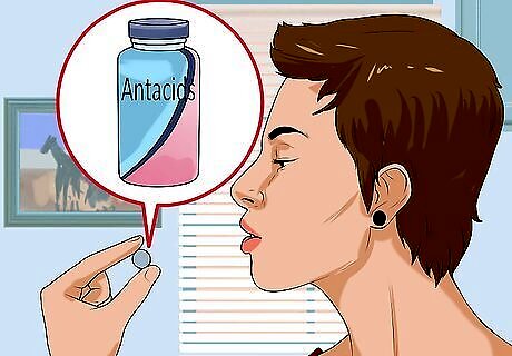 Use acid-blocking medications. You'll most likely need to take proton pump inhibitors which block stomach acid. Prescription or over-the-counter medications may include: omeprazole, lansoprazole, rabeprazole, esomeprazole, pantoprazole. Proton pump inhibitors do have some long-term side effects which include an increased risk of pneumonia, osteoporosis, and intestinal infections.