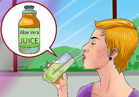 Drink aloe vera juice. Research shows that aloe vera can help heal gastric ulcers. Aloe juice decreases inflammation and acts to neutralize the stomach acid, reducing pain. To use it, drink 1/2 cup of organic aloe vera juice. You can sip this throughout the day. But, since aloe vera can act as a laxative, limit your drinking to a total of 1 to 2 cups a day. Make sure to buy aloe vera juice that contains a high level of aloe vera juice. Avoid juices that contain a lot of added sugars or fruit juices.