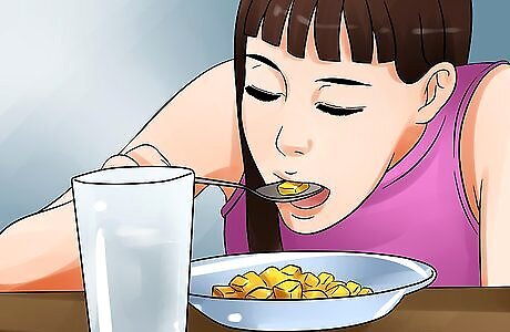 Drink plenty of water to avoid constipation. Constipation refers to infrequent bowel movements and is characterized by having less than three bowel movements in a week. If you suffer from ovarian cysts, it is important to avoid constipation because the pressure can cause additional ovarian pain. Prevent constipation by drinking at least eight glasses of water every day to create softer stool. Additionally, eat foods high in fiber, such as legumes, oat, rye, barley, berries, plums, broccoli, and carrots. Including high fiber food in each meal can prevent constipation.